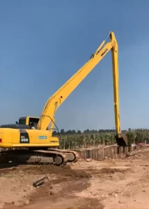 Конструкция телескопической рукояти подразумевает наличие нескольких секций, плавно выдвигающихся одна из другой, обеспечивая внушительный радиус действия. Это позволяет экскаватору выполнять работы на значительном удалении от точки опоры, что критически важно при строительстве глубоких котлованов, разработке карьеров или обслуживании водных объектов. В зависимости от вида модели позволяет вести раскопки до 27м в глубину.